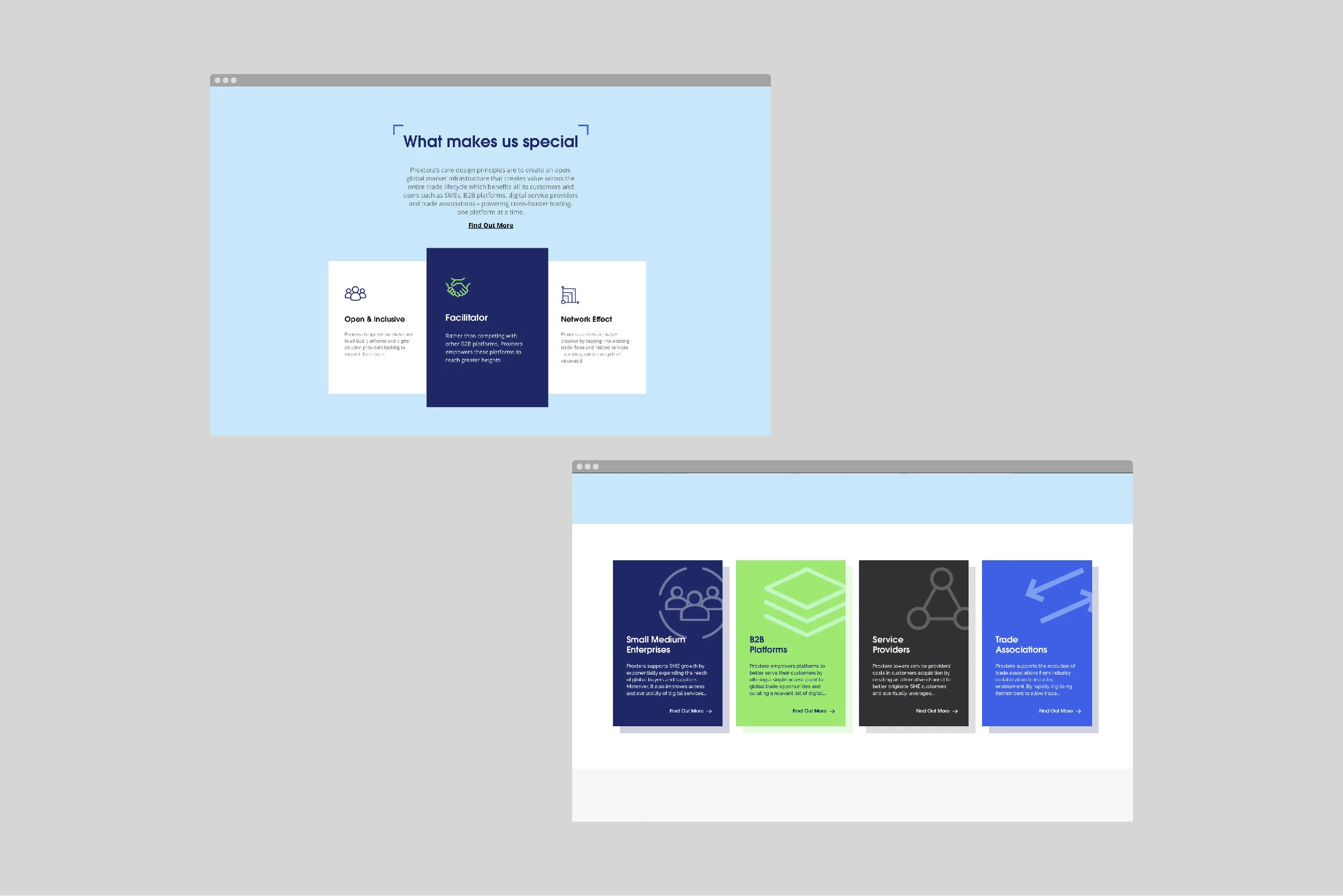 We designed the brand identity of Proxtera to demonstrate trust and connection. The design embodies the spirit and the ambition of Proxtera to create boundless connections and unconstrained growth through cross-border trading - to close the gap between different worlds.